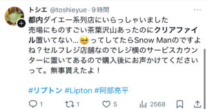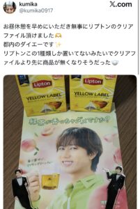 SNSでは「#リプトン阿部亮平」「#阿部亮平クリアファイル」で多数の投稿がトレンド入りしています。