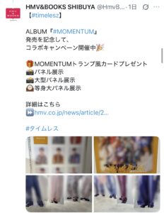 【HMV 渋谷】タイムレス×MOMENTUMの等身大パネルの場所と展示期間